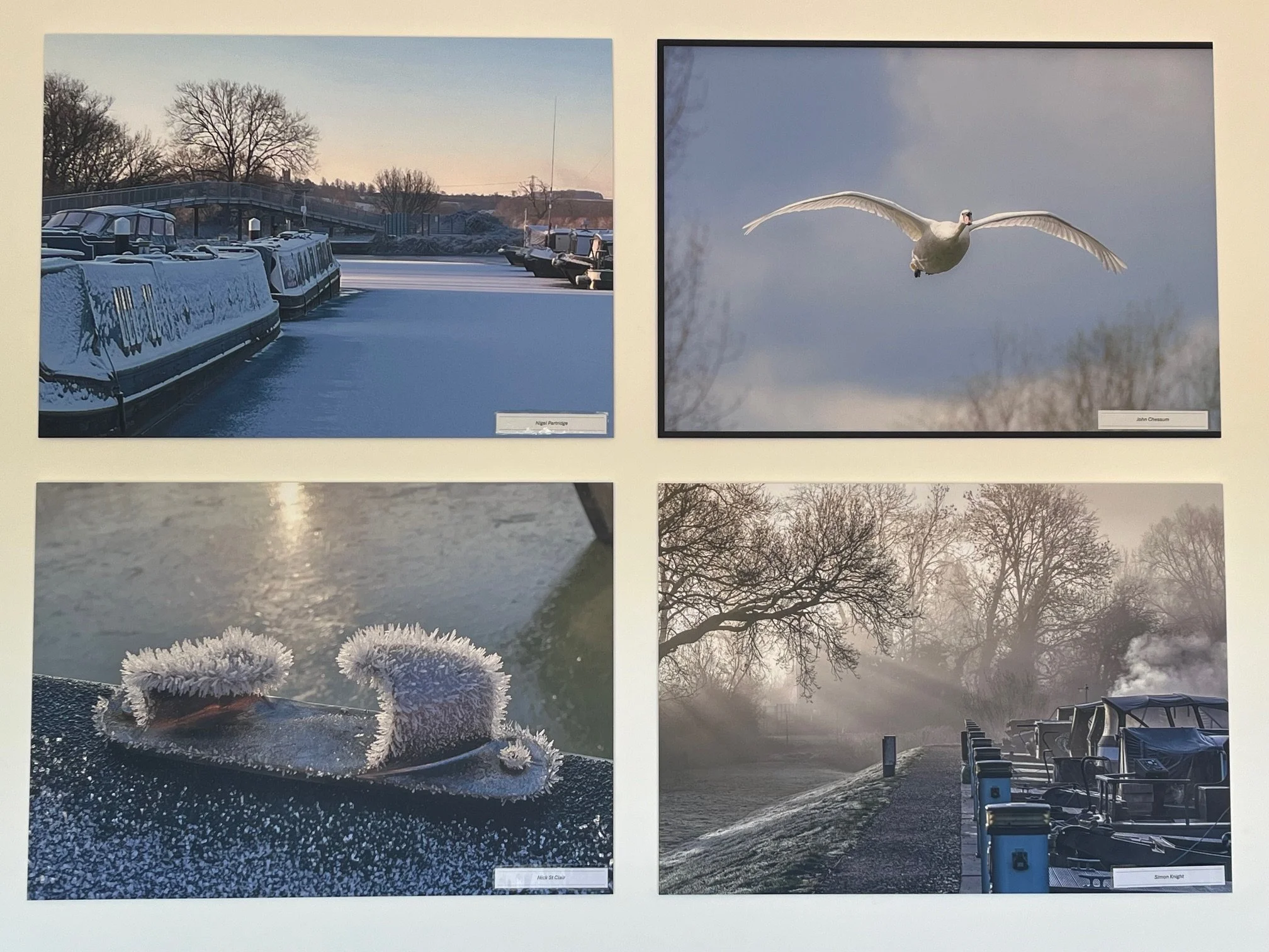 Talking of the new facilities block, we recently held a competition for boaters to send in photographs that had been taken on the marina to display on the walls. We had some wonderful entries as you can see in the picture. To entice our photographers to take part, there was a bottle of red wine up for grabs for each winning photograph, and below is Nick St. Clair (WB September Sunlight) with his red wine trophy and fabulous Winter cleats picture.
