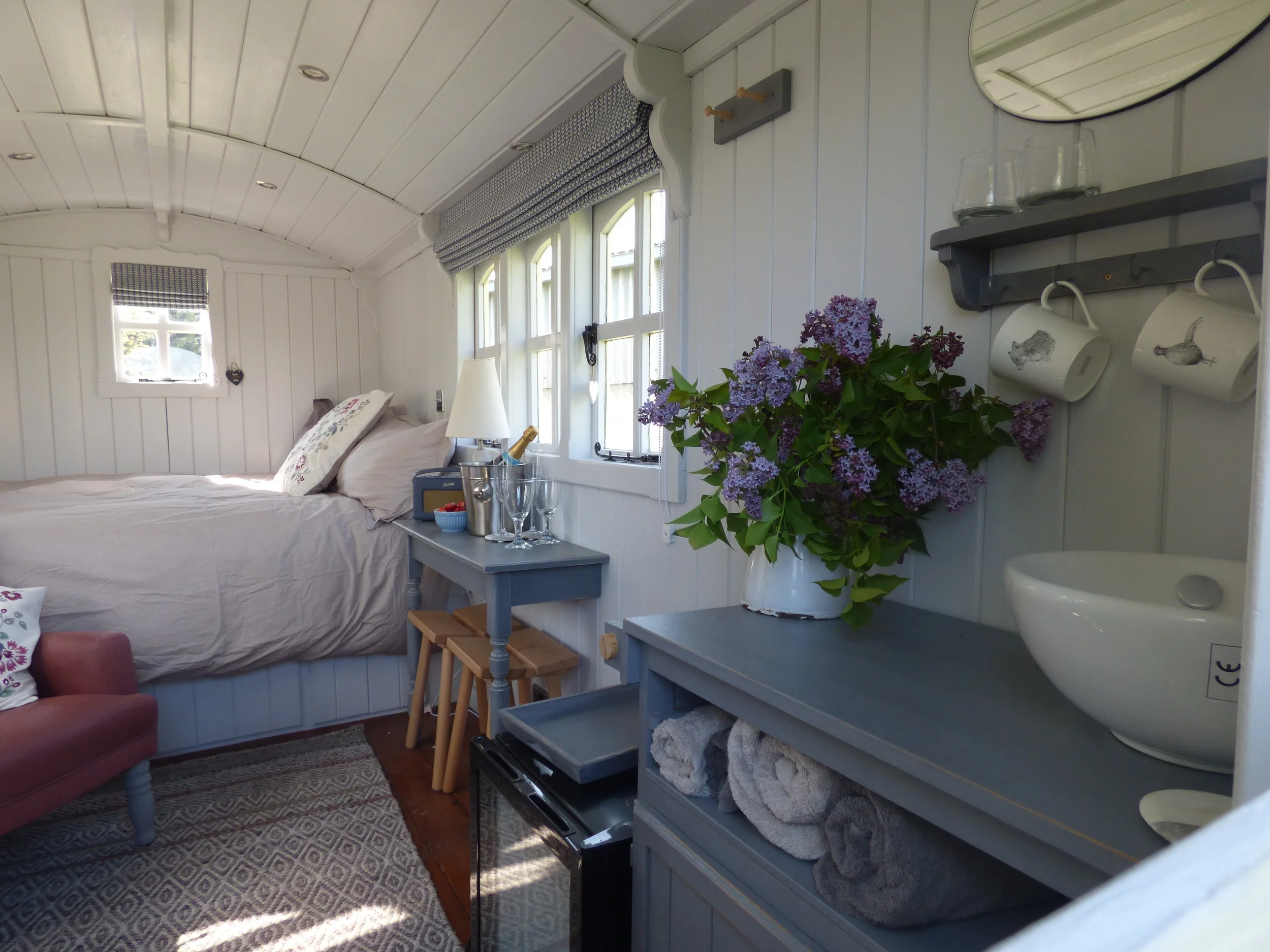 We are so thrilled to be able to offer you the opportunity to stay close to White Mills Marina in our truly beautiful, pretty and cosy little shepherd’s hut Mary’s. It’s just a short hop away from the marina, at Pastures Farm. There are numerous walks to enjoy and the village of Earls Barton is just a 20-minute stroll away.